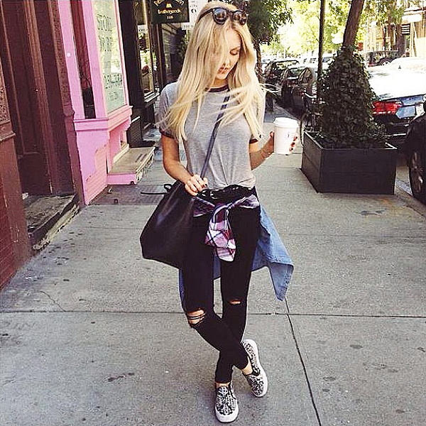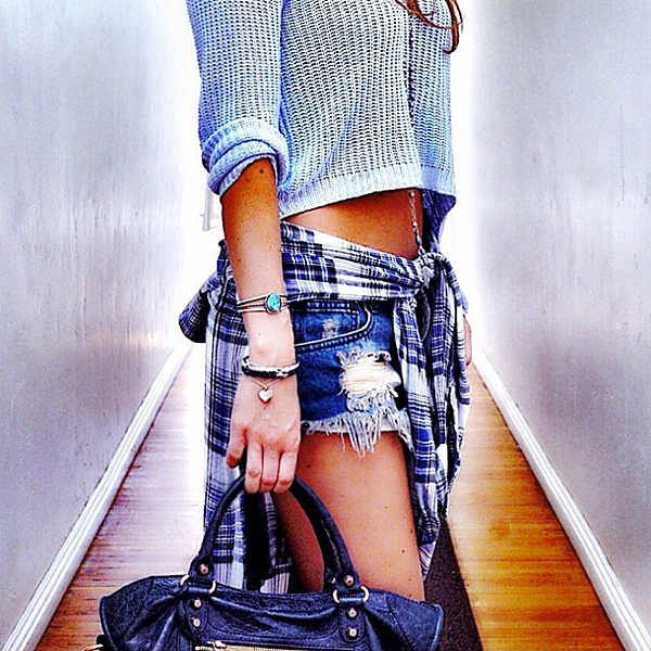 而從春夏延續至秋冬,選擇格紋襯衫綁在腰際間的穿搭方式越來越熱門。