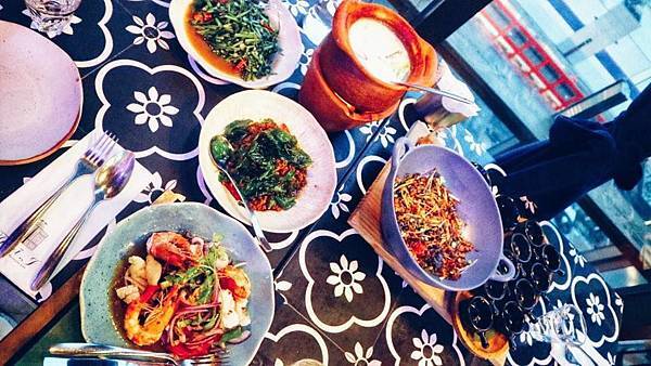 泰式米沙拉、泰式打拋豬、綠咖哩雞、香辣炒鱸魚、泰式海鮮涼拌 、泰北椰汁酸辣雞湯、辣炒空心菜、鳳梨可樂達、MOJITO、雪梅、森林湧泉